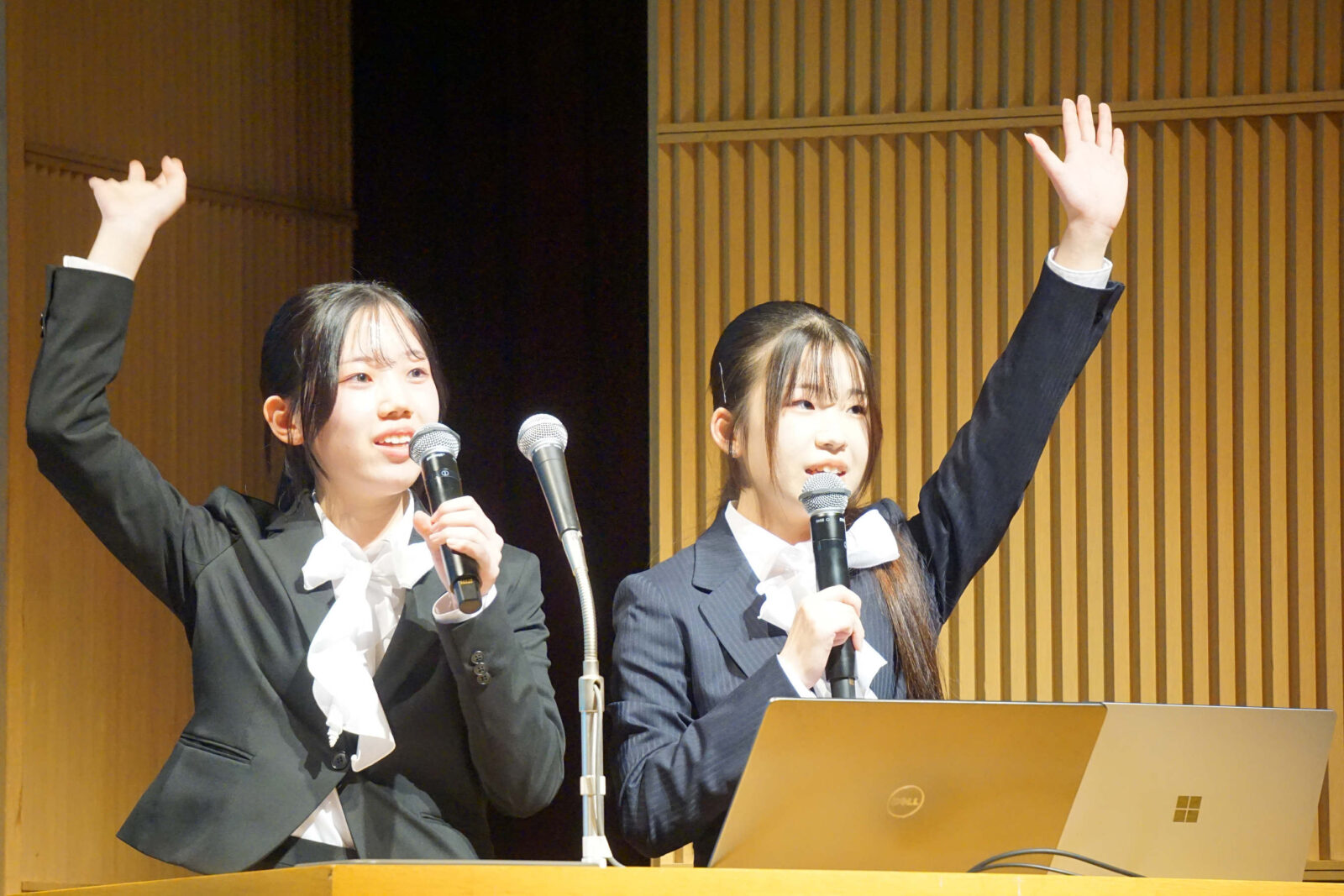 プレゼン当日まで、何度も練習を重ねた2人。発表順を決めるジャンケンで、なんとトリを引き当てることに。緊張のあまり、他チームの発表中は耳を塞いでいたというKさんも、本番では堂々としたプレゼンを披露。それもそのはず、ゼミではプレゼンをする機会が多く、実力が鍛えられているようでした。